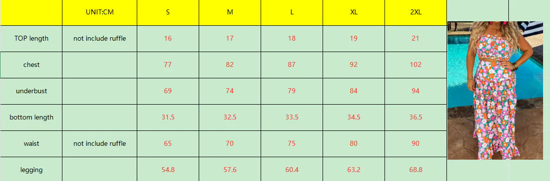 SKIRT: Features a stretchy matching swim fabric top part with a flowy chiffon bottom with ruffle trim! Skirts come paired with swim sets in the following sizes: