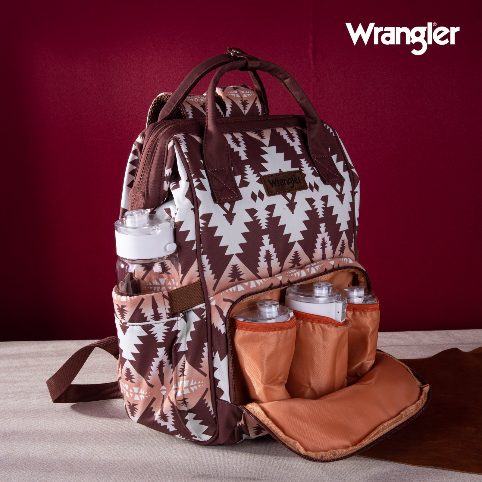 Aztec Brown Wrangler Bag / Diaper Bag - Coffee Interior