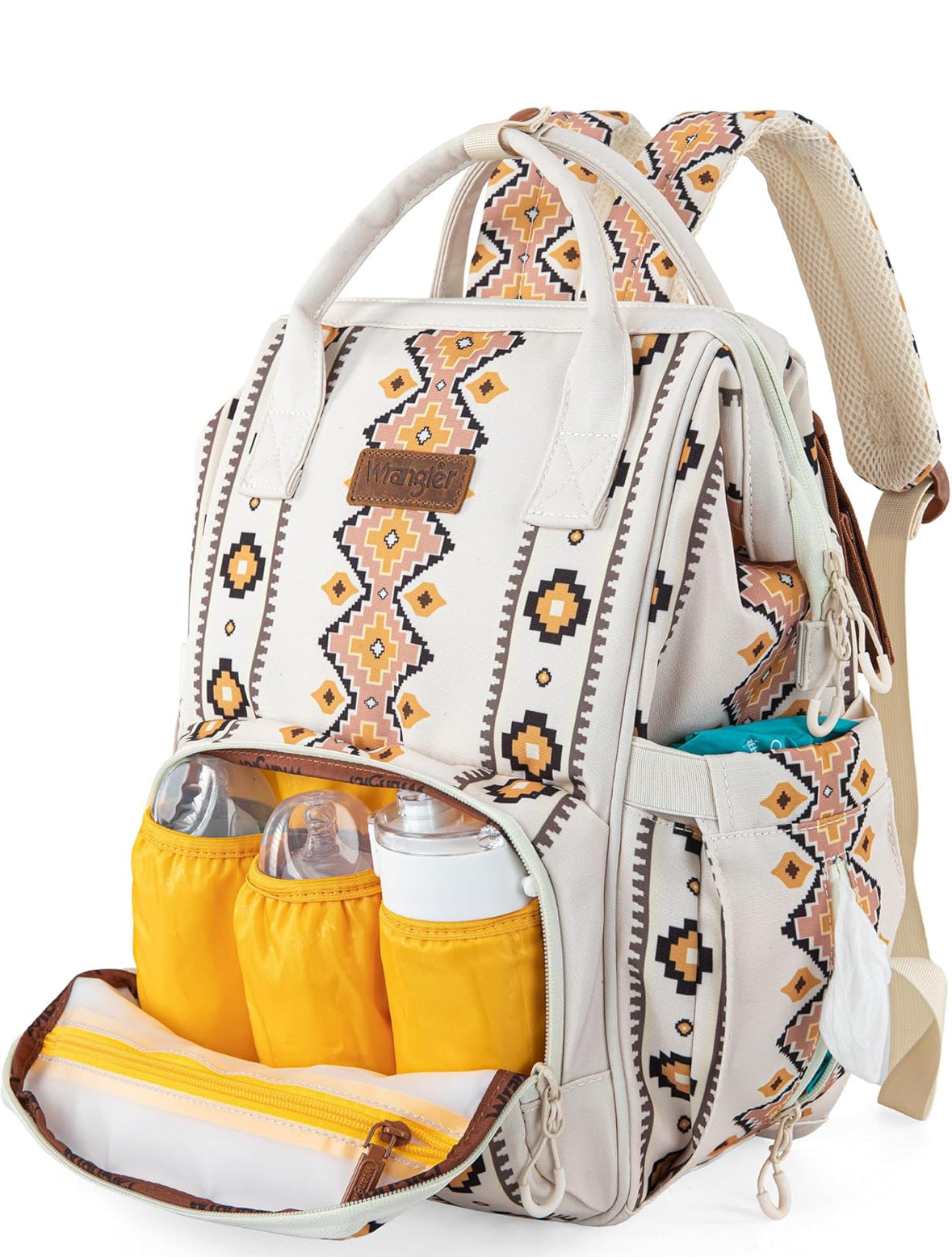 Aztec Cream Wrangler Bag / Diaper Bag - Yellow Interior