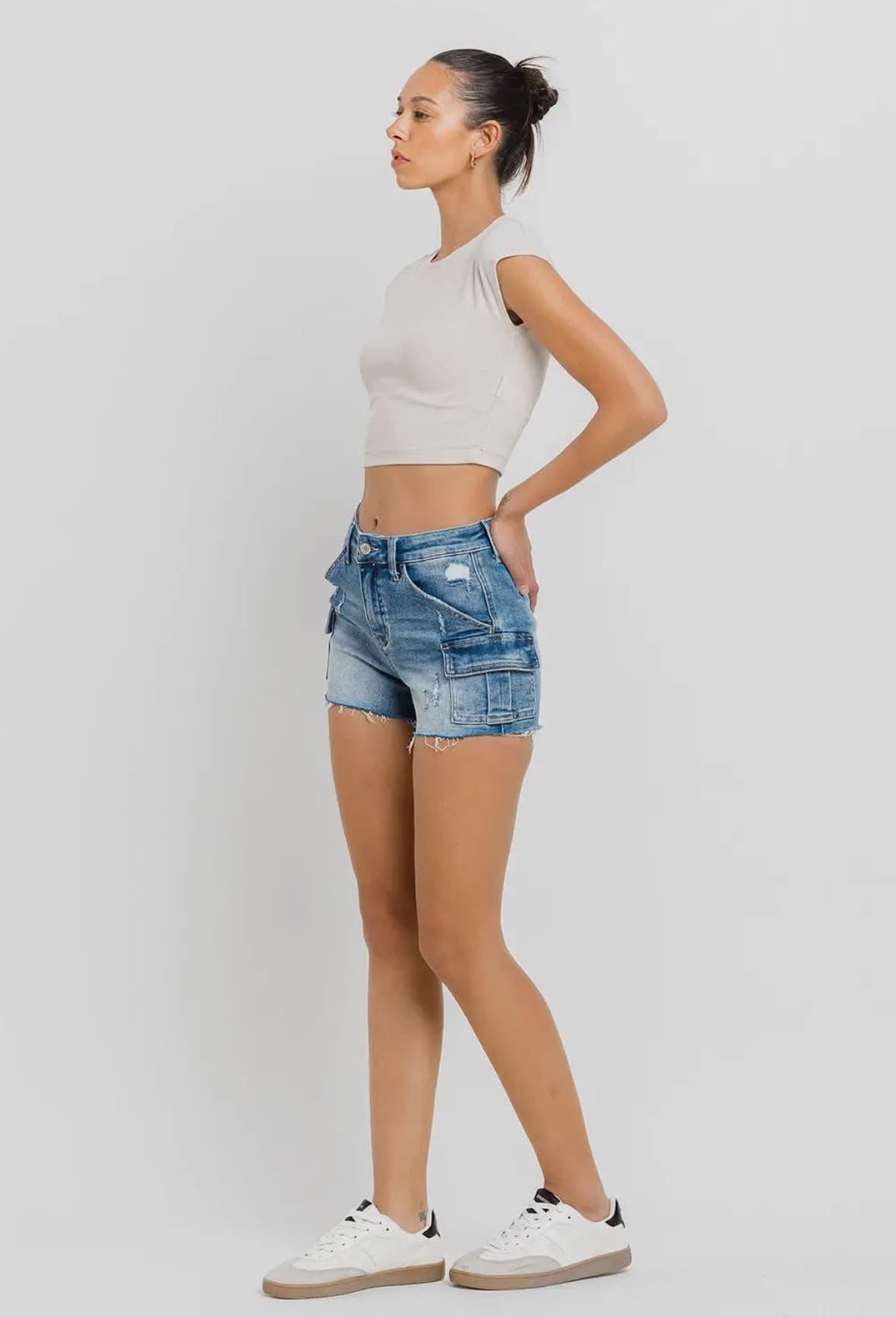 •HIGH RISE CARGO SHORTS