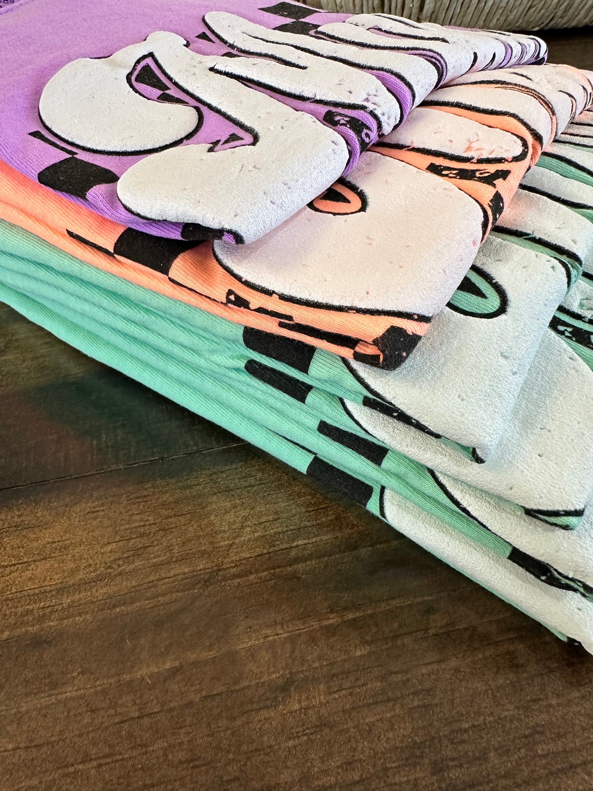 Checkered NEON Mama Puff Print on Comfort Colors