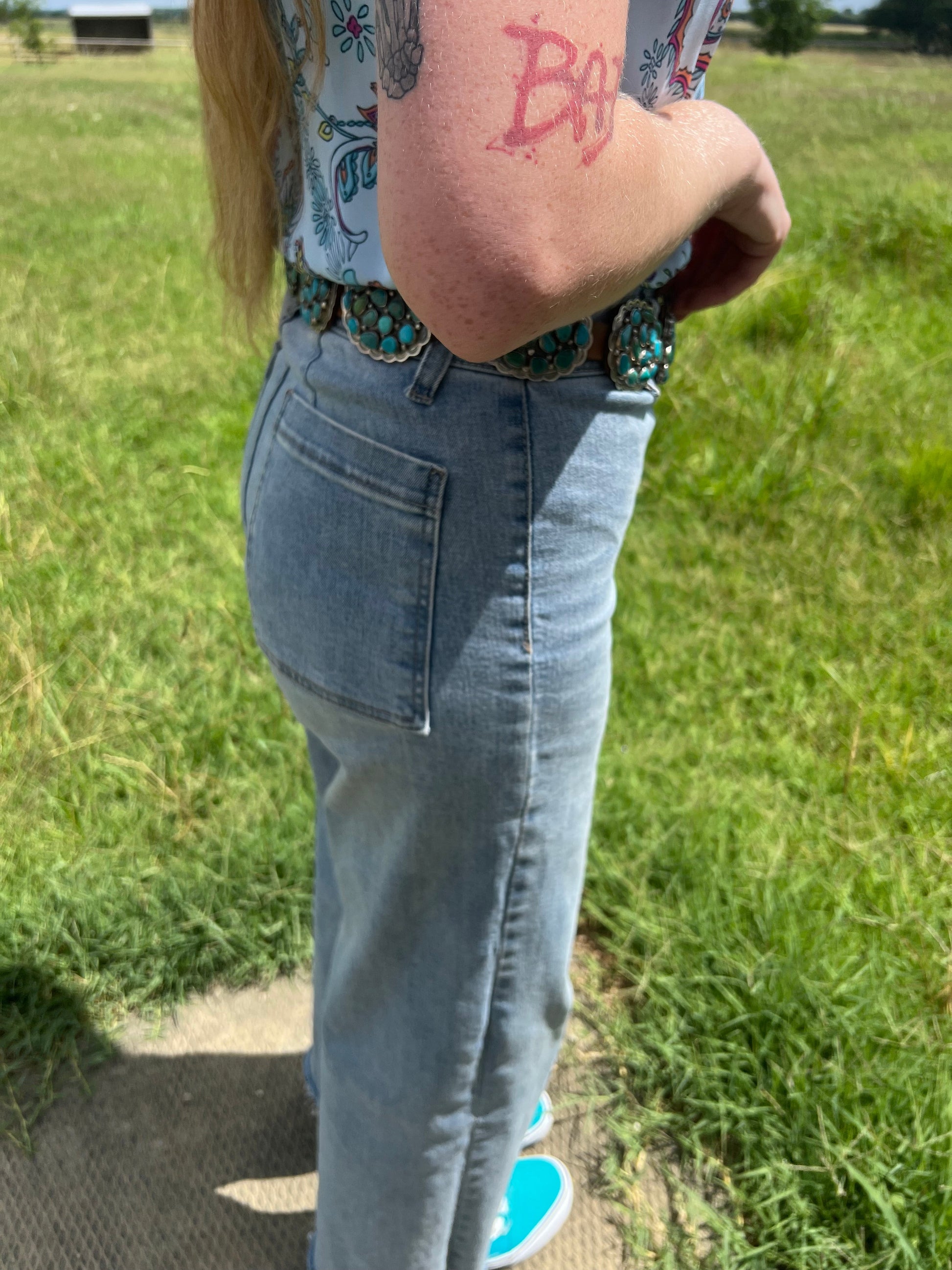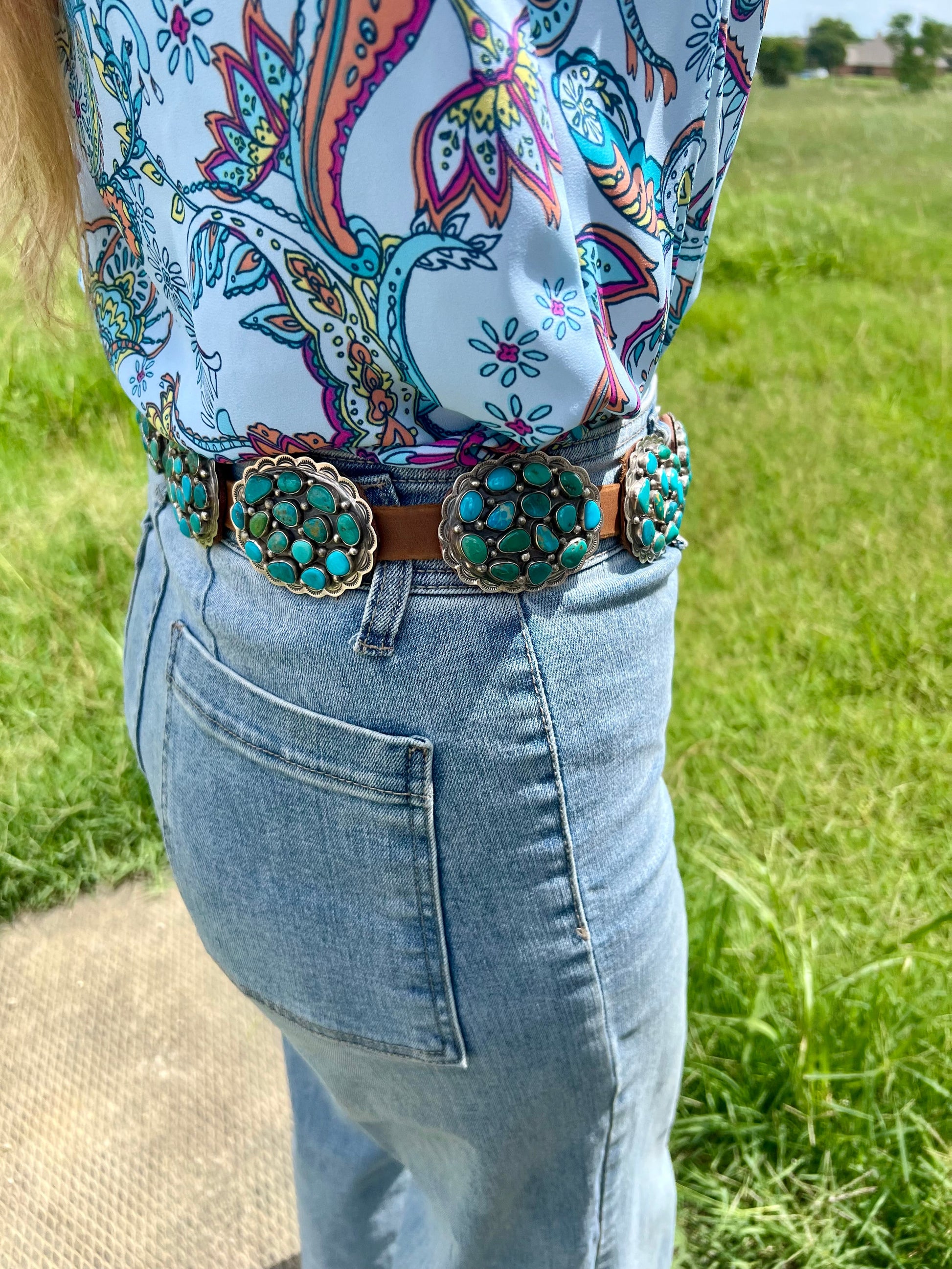 Turquoise Concho Belt – Sterling Silver – Native Made DM – One of a Kind