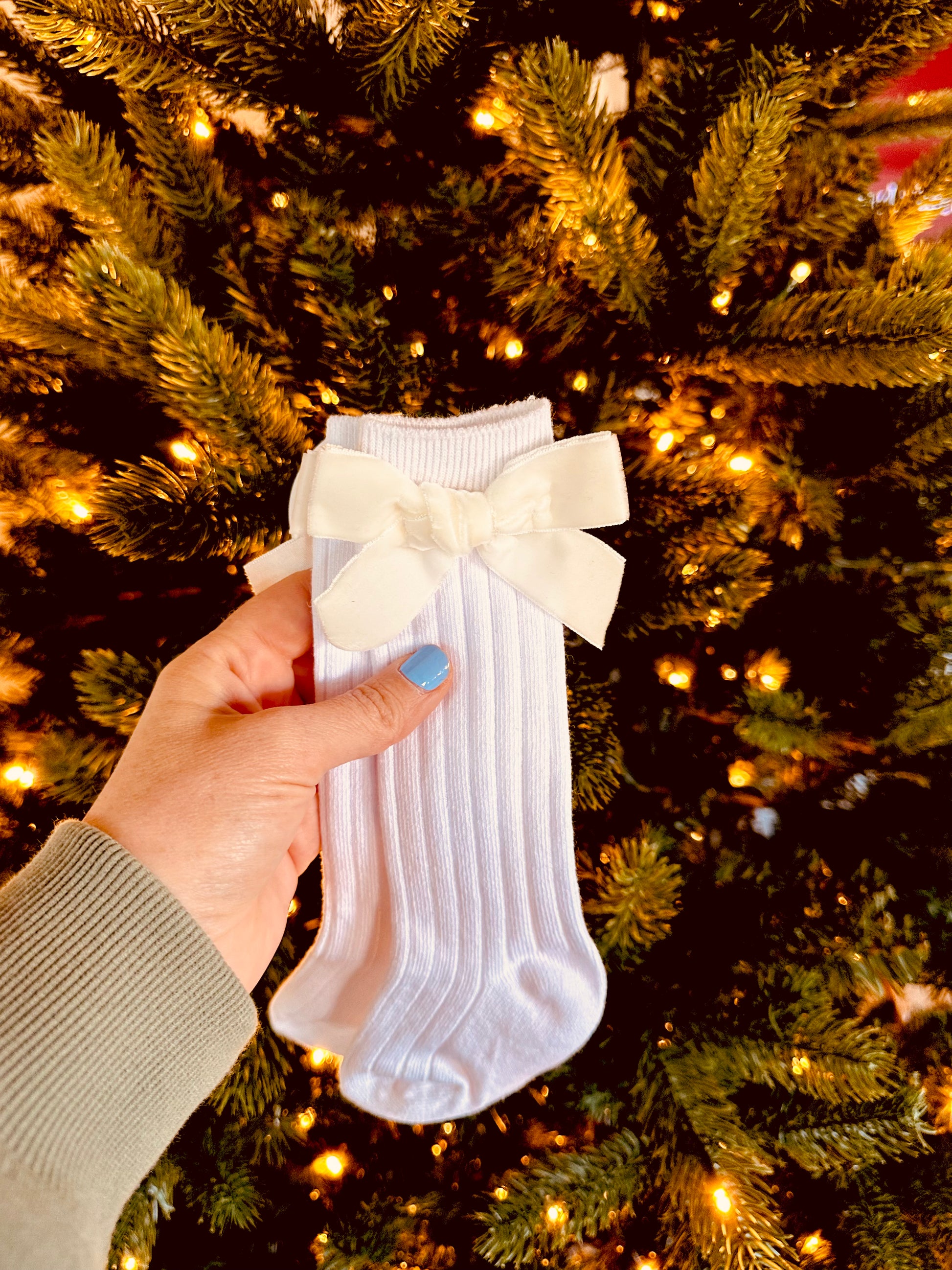 Velvet Bow Knitted Knee High Socks - Ivory